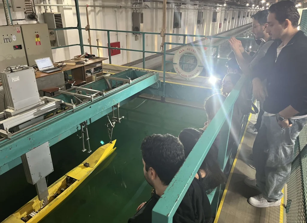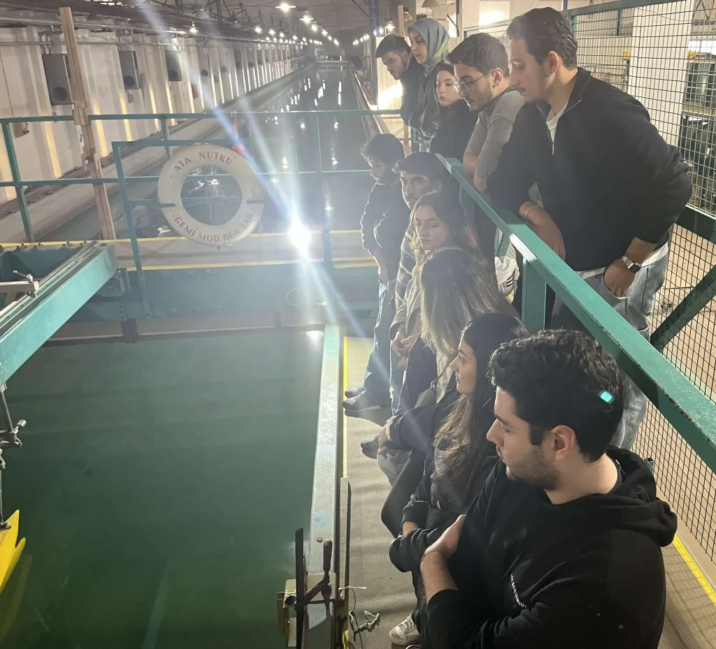 13.11.2025 tarihinde, Piri Reis Üniversitesi Gemi İnşaatı ve Gemi Makineleri Mühendisliği bölümünden 20 öğrenci, NAME 312 Gemi Direnci ve Sevk dersi kapsamında, İTÜ Gemi İnşaatı ve Deniz Bilimleri Fakültesi, Ata Nutku Model Deney Laboratuvarı ve Kavitasyon Analiz Tüneli teknik gezisine katılmıştır. Ziyaret boyunca Gemi direnci analizlerinde kullanılan gemi modellerinin nasıl yapıldığı, örnek bir gemi model deneyi, kavitasyon analiz örnekleri Sayın Prof. Dr. Ömer Gören tarafından öğrencilerimizle paylaşılmış, Gemi Direnci ve Sevk dersinde teorik olarak işlenen konuların pratikte de görülmesi sağlanmıştır.